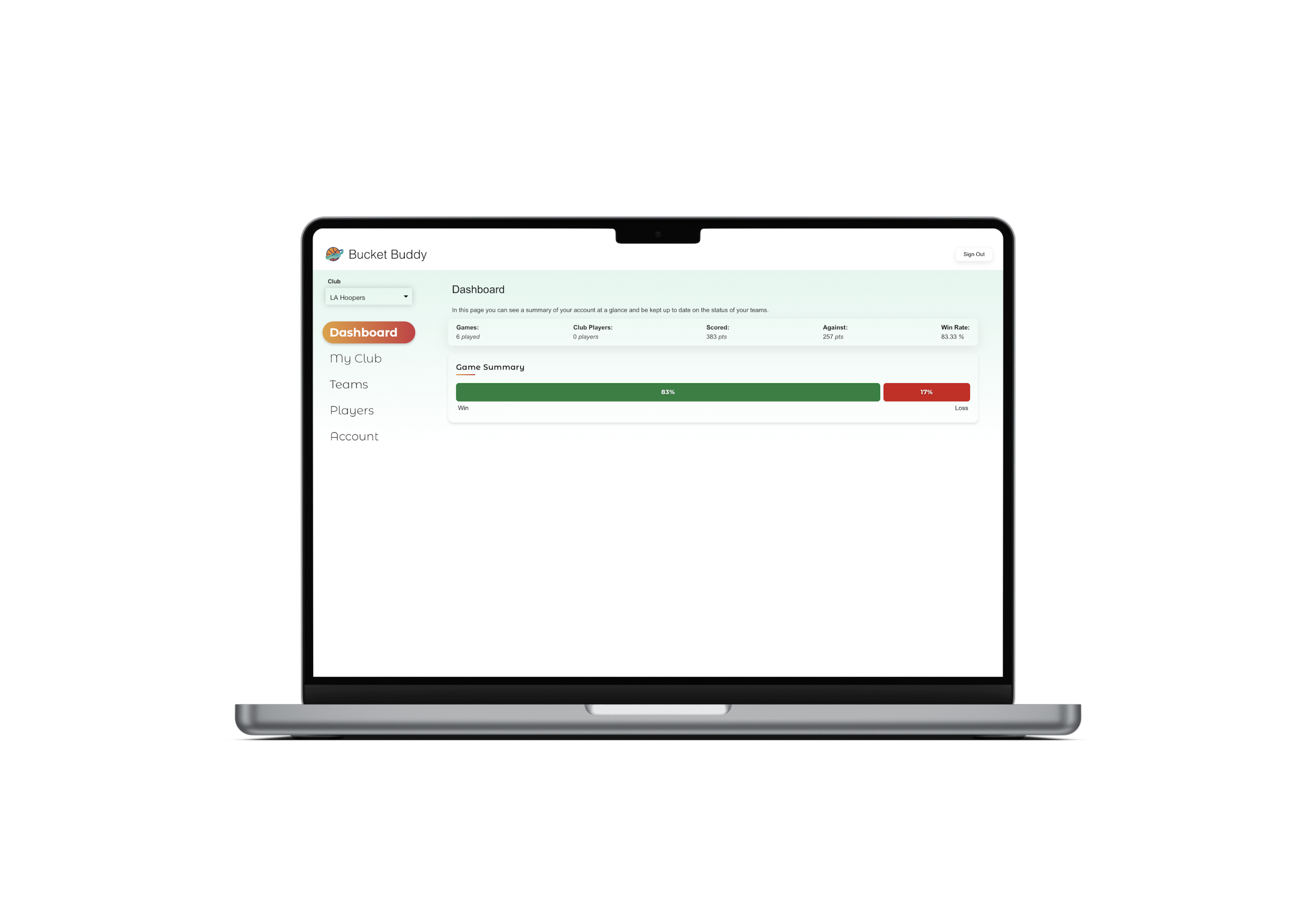Bucket Buddy provides a digital statistic tracking and analysis platform for basketball Clubs of all sizes. We focus on clubs with junior teams with our platform that has been designed to be safe for use by children.